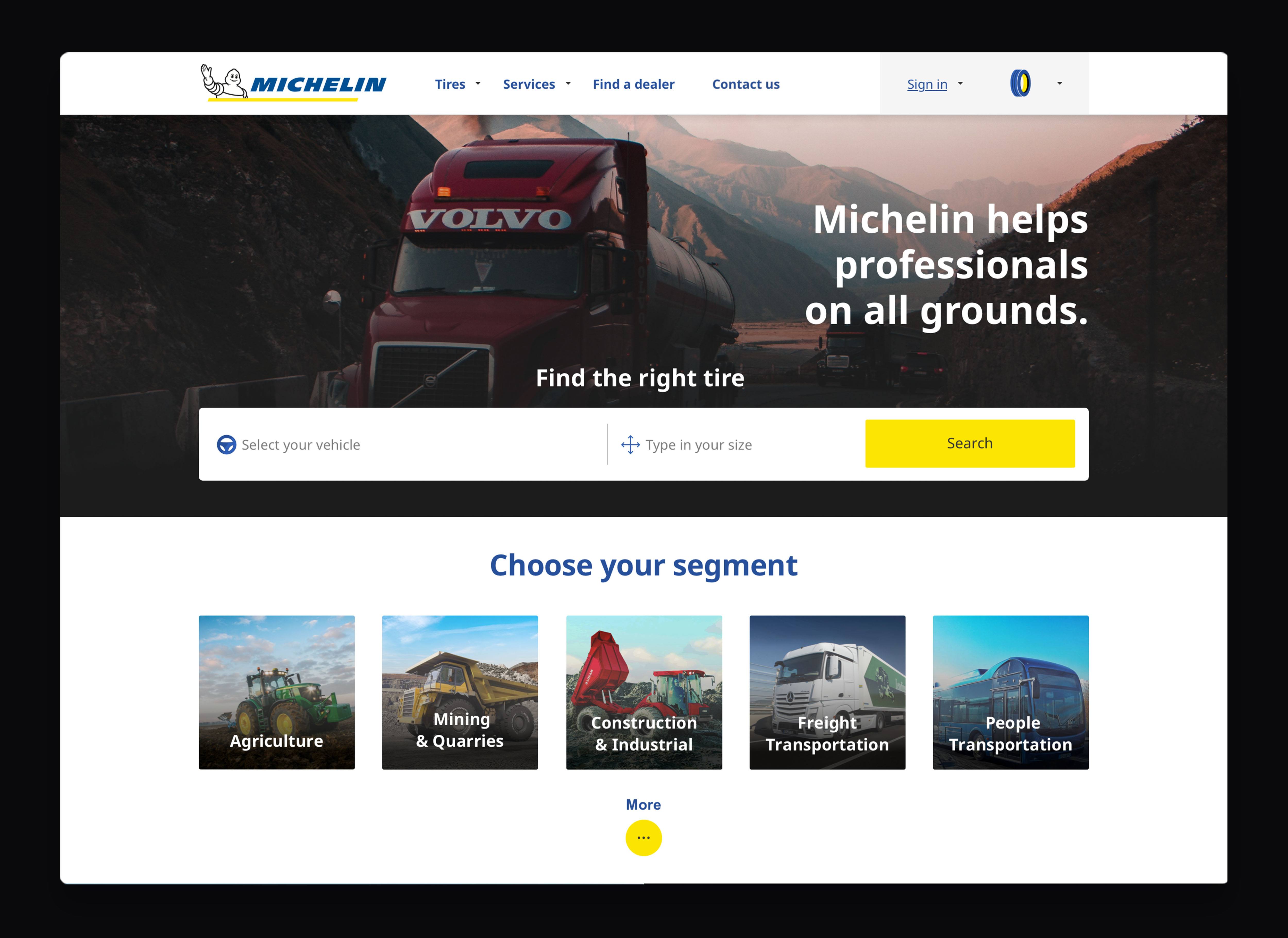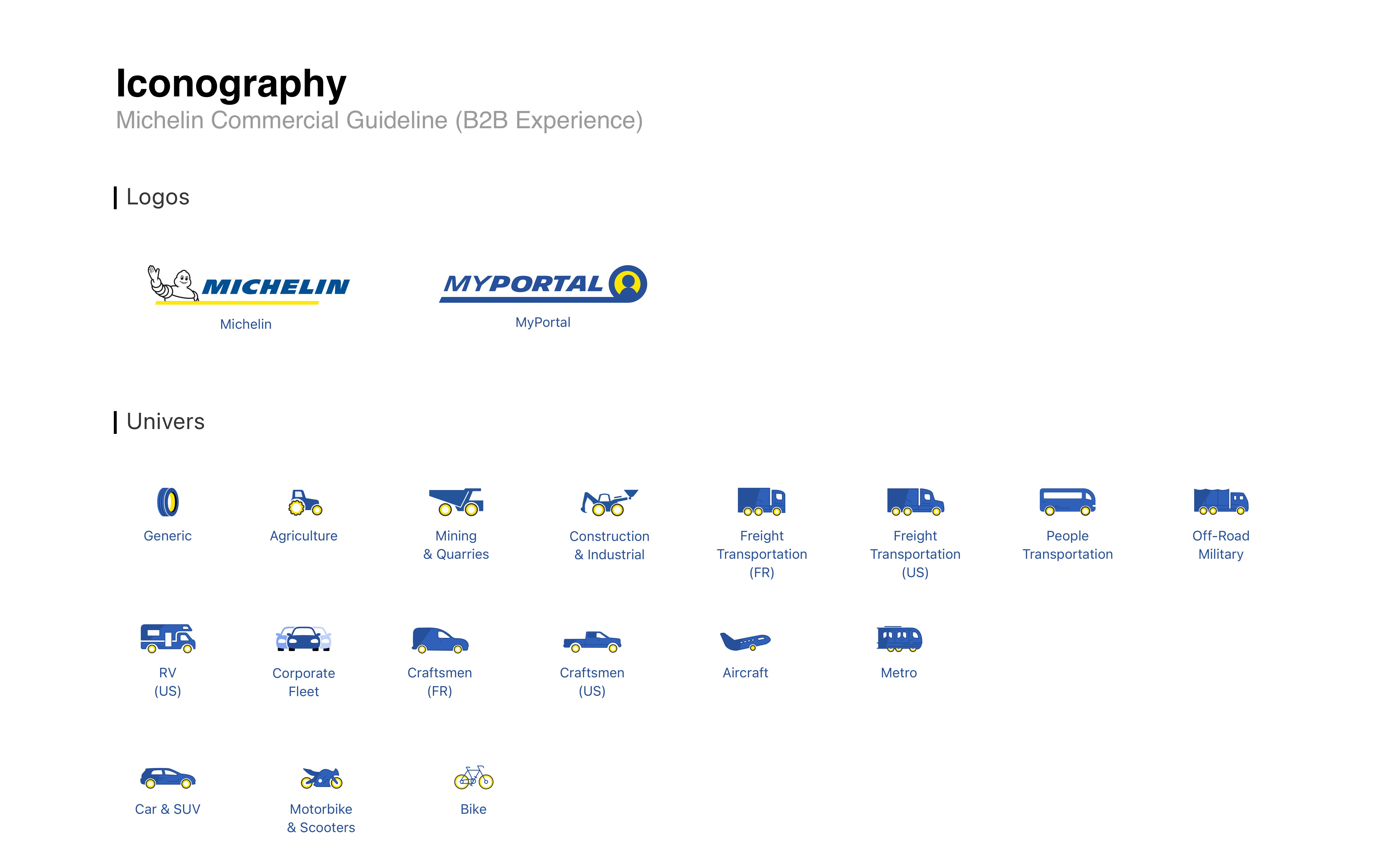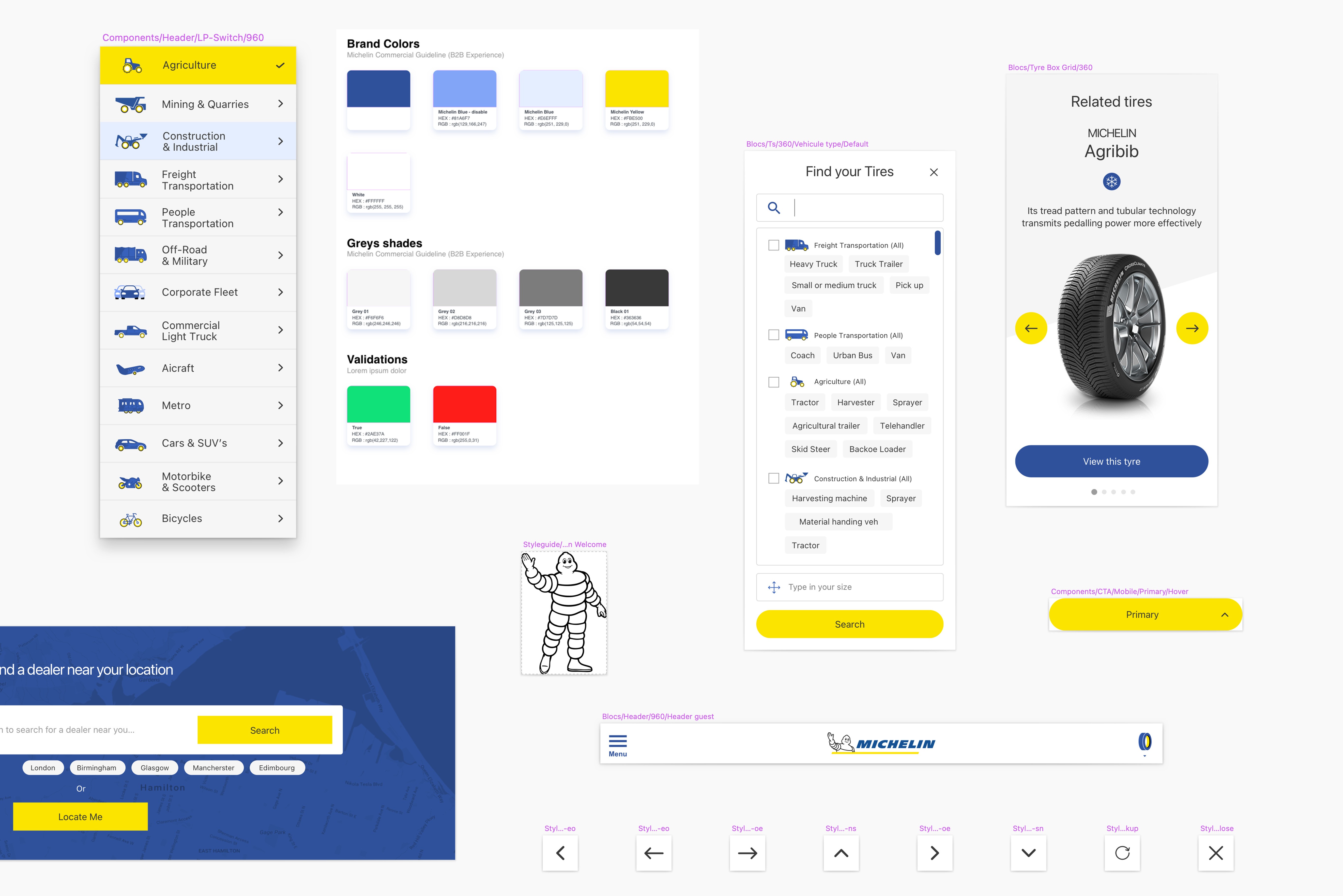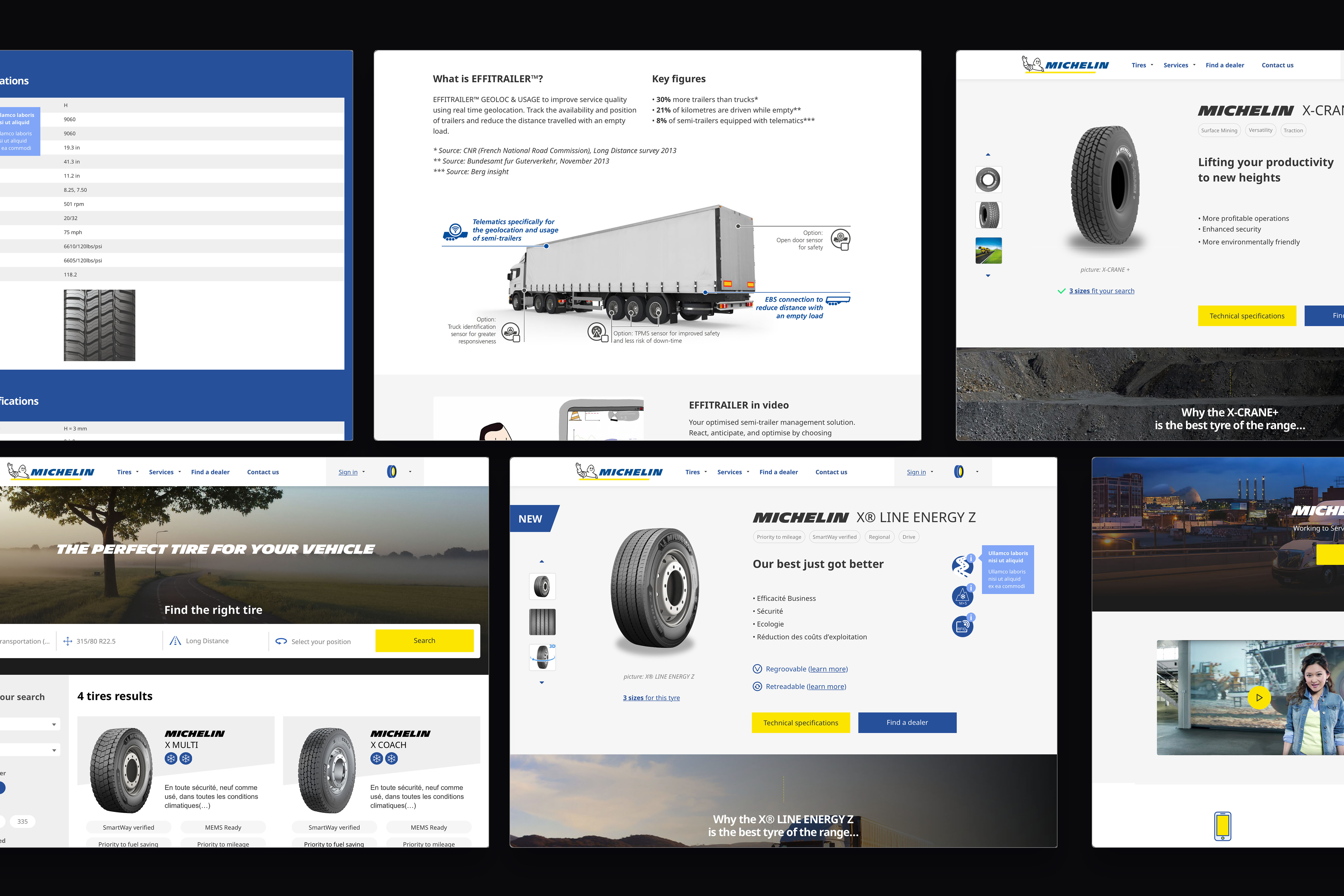 En 2020, dans le cadre d’une mission d’un an chez Michelin Digital, j'ai eu le plaisir d'initier et de construire le Design System du Groupe Michelin sur la base de l’écosystème B2C existant, mais aussi de créer la plateforme B2B Experience, plateforme fusionnant plusieurs sites de pneus B2B pour les professionnels (véhicules légers, dumpers, camions, tracteurs, …).